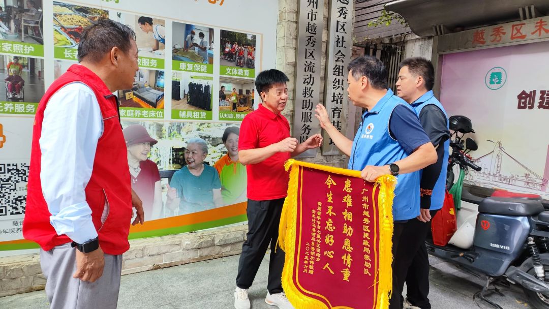 7月3日,越秀区民政救助服务队(以下简称越秀救助队)办公室迎来了一位熟悉的客人。他叫胡加伟,来自贵州省毕节市。几个月前,胡加伟曾经一度流浪街头,在越秀救助队队长胡占权与尚丙辉团队社工的帮助下,不仅得以重返家乡,如今更是找到了一份稳定的工作,生活迈上了正轨。此行特地来到越秀救助队办公室赠送锦旗以表感激。“感谢广州恩人对我的帮助,我一辈子也忘不了这份恩情。”胡加伟说。