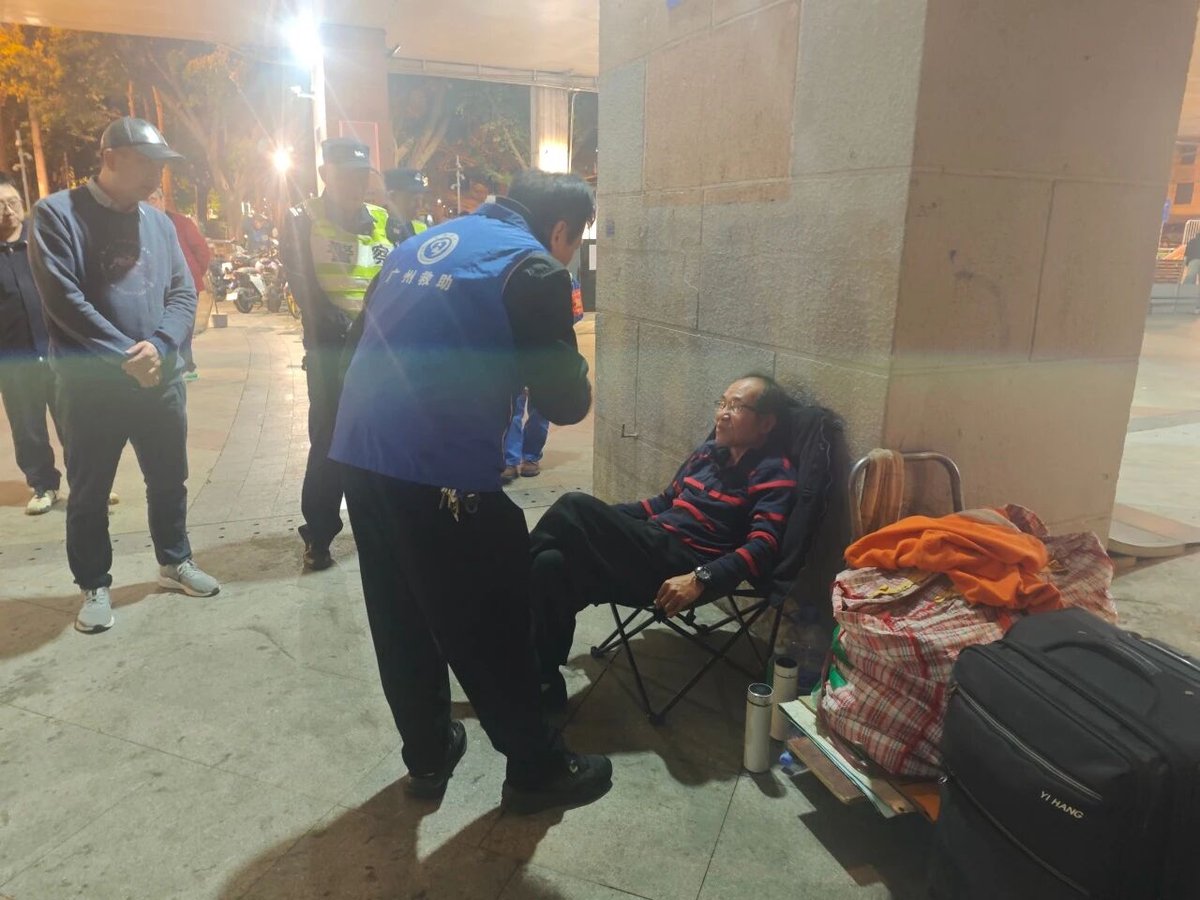 时间回溯到2025年初春,六十多岁的李志伟蜷缩在越秀区海印桥底,当时的他衣衫褴褛、面色苍白,在阴冷潮湿中度过了漂泊的第三十个年头。因一场家庭变故背井离乡,他从辗转打零工到流落街头,岁月磨平了他的棱角,也让他对家乡的思念愈发浓烈,却因身份信息缺失,始终无法踏上归途。一次日常的辖区巡逻中,胡占权队长发现了这位眼神空洞的老人,多年的救助经验让他敏锐察觉到老人的困境,一场跨越隔阂的“破冰之旅”就此开启。